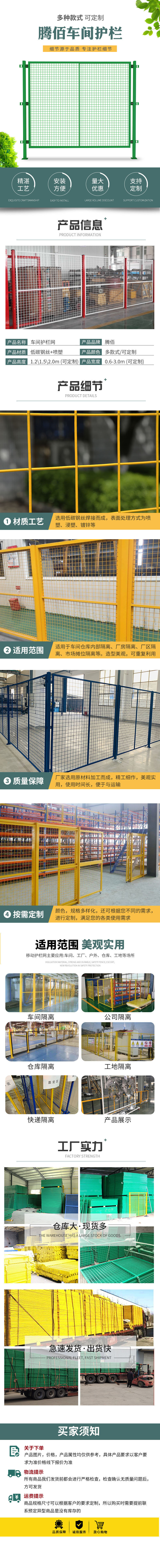 车间隔离栅以其精湛的做工,靓丽的外观,特别的造型,低廉的价钱,简便的安装,不易褪色整体稳固的特性被广泛的应用于厂区车间仓库,还适用于小区住宅,私人地域,公路铁路,港口码头等地。